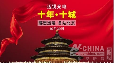 10月30日,以“十年載譽(yù)·新品呈鑒”為主題的邁銳光電十城感恩巡展暨新品推介會(huì)將在北京新云南皇冠假日酒店隆重舉行。屆時(shí),邁銳光電將聯(lián)袂國(guó)星光電、日月成科技、諾瓦電子、視誠(chéng)科技四大戰(zhàn)略伙伴,邀請(qǐng)各大客戶、渠道商、集成商、媒體朋友、行業(yè)同仁共聚一堂,為大家奉上本年度市場(chǎng)與技術(shù)方面最前沿、最實(shí)用的LED視聽(tīng)盛宴。