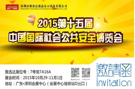 每到十月份,便是安防行業(yè)約起的季節(jié)。2015年第十五屆中國國際公共安全博覽會(簡稱安博會,英文縮寫CPSE)將于2015年10月29日-11月1日,在深圳會展中心隆重開幕。作為安防專業(yè)液晶顯示領(lǐng)域領(lǐng)先品牌,雅迅達15年風(fēng)雨兼程,在多年的安博會中彰顯出了品牌的魅力與實力。今年,雅迅達同樣不會失約,別樣15年,別樣品質(zhì)!2015年深圳安博會“以屏見高下”,雅迅達邀您現(xiàn)場品鑒!