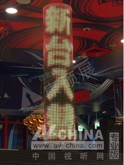 LED顯示屏,這些led圓柱屏采用P10點間距,直徑為200mm,高度960mm,吊裝在賭場天花板上,與賭場燈光音響相互結(jié)合,給人帶來強烈的視覺沖擊和美的享受。