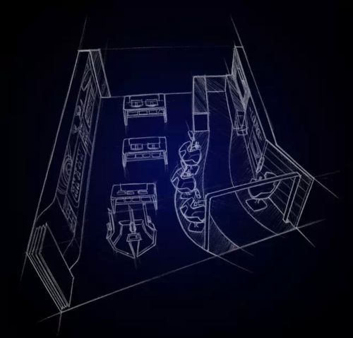 “致密音吧”的概念是從布局、墻柜到中島展架都做了整套的設(shè)計解決方案,解決了在小空間內(nèi)要求緊密又不擁擠的要求。