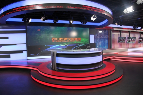 四川傳媒學(xué)院全媒體交互式演播中心項目于2014年9月動工,2015年1月建設(shè)完成。演播中心占地800平方米,總投資2000多萬元。從傳播專業(yè)角度看,這個中心以視音頻處理為主,兼有圖文信息合成功能。中心融動畫捕捉系統(tǒng)、多屏聯(lián)動交互點評系統(tǒng)、三維虛擬植入系統(tǒng)、互聯(lián)網(wǎng)外網(wǎng)信號接入及互動系統(tǒng)等多個子系統(tǒng)為一體,采用專業(yè)高清設(shè)備攝取、最新軟件技術(shù)處理信息,能為視音頻節(jié)目制作提供極富現(xiàn)代感的技術(shù)支撐,并支持在互聯(lián)網(wǎng)聯(lián)網(wǎng)環(huán)境下及交互模式下制作各類節(jié)目。其功能代表著視音頻信息產(chǎn)品生產(chǎn)的某些未來趨勢。