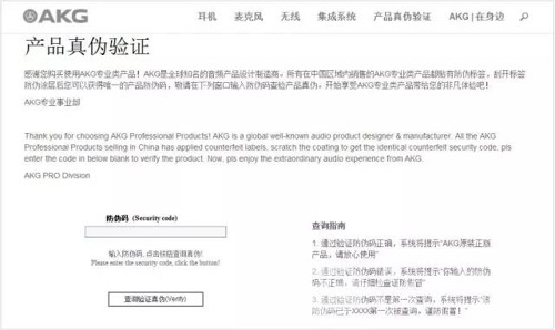 AKG 歷史故事、精彩視頻、最新產(chǎn)品、服務支持一一為您呈現(xiàn)。同時,您也可以在官網(wǎng)的“產(chǎn)品真?zhèn)悟炞C”頁面上,為您所購買的AKG專業(yè)產(chǎn)品查詢真?zhèn)巍?/P>