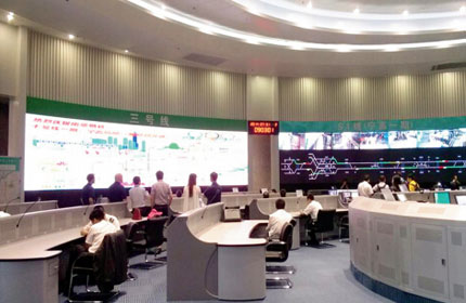 某地證券交易所大屏幕系統(tǒng)采用三菱電機(jī)的67英寸背投單元67PEF,5行14列拼接組成。三菱電機(jī)以高技術(shù)品質(zhì)、高清圖像應(yīng)用、高可靠性的產(chǎn)品為證券交易所在數(shù)據(jù)監(jiān)控、運(yùn)營(yíng)管理等方面提供了保障與基礎(chǔ)。