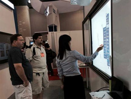現(xiàn)場工作人員進行“投影機+白板”解決方案應用演示