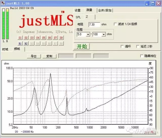 A、判斷箱體的調(diào)諧情況是否符合設(shè)計(jì)預(yù)期。比如將初步完成的箱系統(tǒng)的阻抗曲線與模擬的進(jìn)行比較,如果差異較大,可以據(jù)此尋找原因。具體過程可以參考D‘Appolito的《實(shí)用揚(yáng)聲器測(cè)量》。這里要注意的是,阻抗測(cè)量結(jié)果受測(cè)量電平影響很大,T/S參數(shù)測(cè)量時(shí)的信號(hào)電平以及最后實(shí)測(cè)時(shí)的電平都會(huì)造成這個(gè)差異,應(yīng)該區(qū)別對(duì)待。
