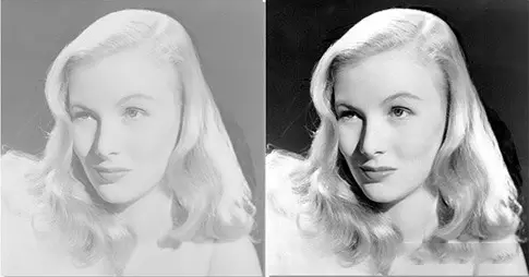 高對比度投影畫面(左)與低對比度投影畫面(右)的對比