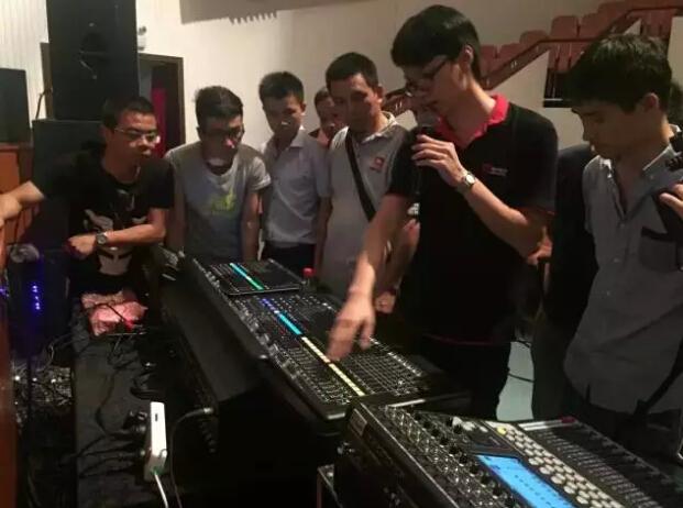 本次培訓(xùn)班主辦方不僅邀請(qǐng)了業(yè)內(nèi)知名的舞美、燈光、音響老師蒞臨講課,為了協(xié)助舉辦好這次骨干培訓(xùn),廣州銳聲攜旗下多個(gè)一線品牌如:GLP、LSC、TWAudio、SAL、JBL、SHURE、MIDAS等多款最新數(shù)字化產(chǎn)品,為培訓(xùn)會(huì)提供擴(kuò)聲支持,并在由銳聲主講的2天的實(shí)操培訓(xùn)課程中,為到場(chǎng)的學(xué)員嘉賓進(jìn)行了詳盡的介紹、試聽與實(shí)操培訓(xùn)。不僅向他們傳達(dá)了最新的燈光音響新技術(shù)、新產(chǎn)品、新理念,還提高了培訓(xùn)班學(xué)員的實(shí)際操作能力。