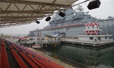 航母主題公園是由“基輔“號(hào)航空母艦為主體的大型設(shè)施,它為游客提供軍事知識(shí)、趣味觀光、家庭休閑娛樂以及在甲板上進(jìn)行軍事表演等。ACE過去曾在該主題公園成功配置安裝了一套演出擴(kuò)聲系統(tǒng),這次,ACE又為“航母花車巡游”及“航母飛車表演” 的兩項(xiàng)演出活動(dòng)設(shè)計(jì)調(diào)試擴(kuò)聲系統(tǒng)。