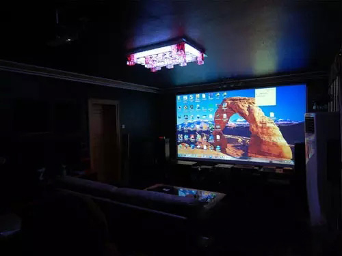 投影與大屏不同,是被動發(fā)光,所以極易受環(huán)境影響,比差環(huán)境對聲音帶來的影響要明顯的多。對于追求終極畫質的玩家來說,所謂客廳投影,抗光灰幕,都是扯淡。王道還是遮光吸光。
