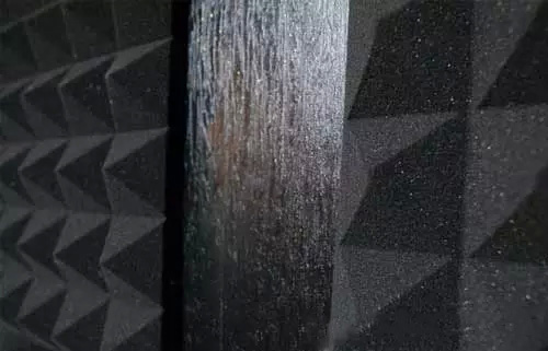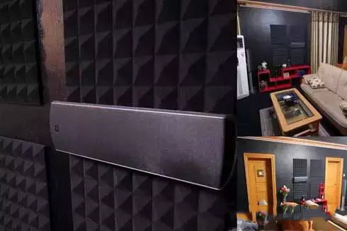 對于吸音,還用了十塊金字塔形吸音海綿,貼在第一反射點與后環(huán)繞處,價格便宜(一塊38元),施工簡單。