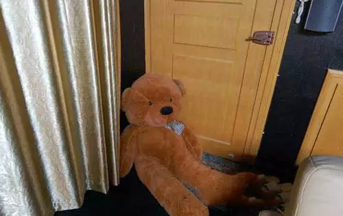 為了更和諧,更有情趣,沒有用相同的面孔。右邊請了這個泰迪熊來坐鎮(zhèn)。這小子更大。俺LP都抱不過來。