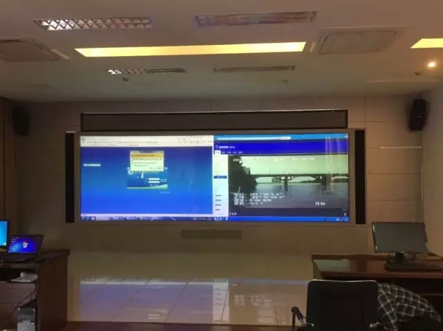 2014年1月,AVANZA激光投影機(jī)首次用于湖州海事局太湖水上救援指揮中心的大屏顯示,該項目到現(xiàn)在已穩(wěn)定的運(yùn)行了一年半的時間。對此項目做了詳細(xì)了解后,金華港航管理局采用了同樣的方案:3臺AVANZA激光工程投影機(jī)構(gòu)建了8m(寬)×1.8m(高)巨大顯示屏,用于實(shí)時監(jiān)控管理、保障航運(yùn)的安全暢通。