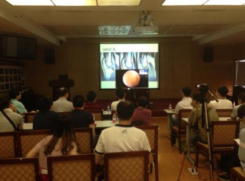 本次培訓(xùn)分為理論培訓(xùn)和手術(shù)示教兩個(gè)部分,其中理論部分從“關(guān)節(jié)鏡手術(shù)在骨關(guān)節(jié)炎中的應(yīng)用及爭議”出發(fā),圍繞ACL自體韌帶重建以及盤狀半月板修補(bǔ)縫合技術(shù)領(lǐng)域相關(guān)話題展開了培訓(xùn)和探討。傳統(tǒng)的膝關(guān)節(jié)手術(shù)創(chuàng)傷大,出血較多,術(shù)后恢復(fù)慢,關(guān)節(jié)處有較大手術(shù)瘢痕。而膝關(guān)節(jié)鏡能對膝關(guān)節(jié)內(nèi)疾病進(jìn)行檢查、診療,適用于膝關(guān)節(jié)損傷、非感染性關(guān)節(jié)炎等,因此膝關(guān)節(jié)鏡手術(shù)被認(rèn)為是對膝關(guān)節(jié)病變產(chǎn)生較好治療效果的治療手段,越來越受到廣大膝關(guān)節(jié)患者的青睞。