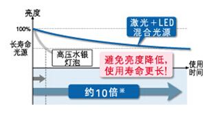 水銀燈泡的壽命是傳統(tǒng)投影機最大的劣勢,高昂的后續(xù)支出費用使得許多對投影機感興趣的消費者望而卻步。但是此次CORE系列投影機使用全新的混合光源技術(shù),使用壽命是燈泡機的10倍左右,并且電力消耗只有普通燈泡投影機的一半。在減少維護成本和使用成本的同時,亮度的衰減也較慢。