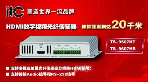 TS-9507HT & TS-9507HR是一款支持高分辨率HDMI視頻信號(hào)多模或單模光纖傳輸延長(zhǎng)器,它將HDMI視頻信號(hào)轉(zhuǎn)換成光纖信號(hào)傳輸,傳輸距離到達(dá)20千米,支持最高分辨率1900×1200@60Hz,并且能夠同時(shí)傳輸雙向RS-232,可配合光纖傳輸接收器或矩陣光纖輸入卡使用。
