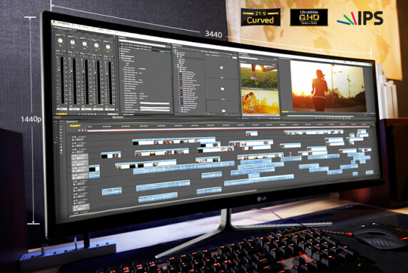相較16:9的全高清顯示器,34英寸的21:9超寬屏顯示更多33%的面積,為工作帶來(lái)更多便利,尤其是音視頻編輯工作,可顯示多于44條的有效視頻片段,比普通全超清顯示器多顯示8條視頻片段,更多的顯示內(nèi)容為用戶省去放大或縮小窗口的操作,高效地編輯各種視頻工作。圖片工作亦是如此,可直接替代兩臺(tái)顯示器,將縮略圖和Photoshop CC同時(shí)顯示在一臺(tái)顯示器上,操作起來(lái)更快速、便捷。對(duì)于游戲玩家,更寬廣的視野有助于看到更多細(xì)節(jié),搶占更多游戲先機(jī),暢享屢戰(zhàn)屢勝的游戲體驗(yàn)。