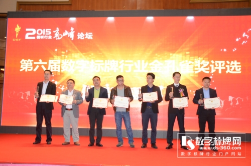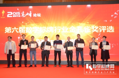 深圳打令智能科技有限公司 主題:打令品牌及產(chǎn)品介紹 在隨后的數(shù)字標(biāo)牌行業(yè)高峰論壇中,來自數(shù)字標(biāo)牌行業(yè)的6位精英代表(從左至右):迅豹聚能科技王培勇、艾爾鵬國際貿(mào)易上海有限公司廖華麟、保千里科技視像集團(tuán)股份有限公司陳楊輝、中銀科技柯金成、南京中電熊貓聶文強(qiáng)、康佳壹世界商業(yè)顯示有限公司衛(wèi)智敏就數(shù)字標(biāo)牌整個(gè)商業(yè)零售業(yè)變革以及智慧城市等趨勢下,數(shù)字標(biāo)牌行業(yè)未來發(fā)展方向展開激烈的思想交鋒與碰撞! 在萬眾期待的數(shù)字標(biāo)牌行業(yè)年度最高榮譽(yù)金孔雀獎(jiǎng)?lì)C獎(jiǎng)典禮中, 30多家數(shù)字標(biāo)牌行業(yè)杰出企業(yè)加冕行業(yè)最高榮譽(yù)“金孔雀獎(jiǎng)”。