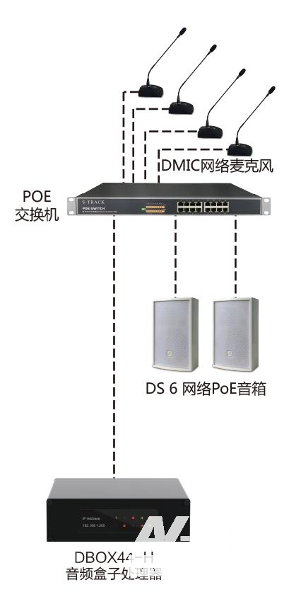 擴(kuò)聲部分:帶DSP控制軟件的支持Dante的POE音柱和POE音箱。