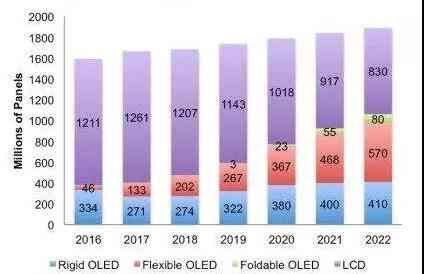 通過(guò)上面的統(tǒng)計(jì)數(shù)據(jù),我們也能夠非常明顯地看到這種趨勢(shì)。在OLED面板中,F(xiàn)lexible OLED(可彎曲OLED)和Foldable OLED(可折疊OLED)增長(zhǎng)率最快。特別是可彎曲OLED面板,預(yù)計(jì)到2022年將在智能手機(jī)領(lǐng)域三分天下。