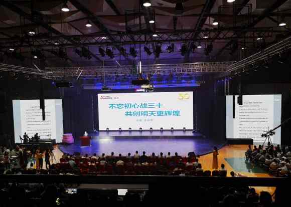 10月8號(hào)下午,來(lái)自行業(yè)協(xié)會(huì)專(zhuān)家、社會(huì)各界友人、國(guó)內(nèi)外合作伙伴及音王員工等共計(jì)2000余人歡聚一堂,在多功能文化體育演藝中心共同歡慶三十周年華誕,共同見(jiàn)證音王人筑夢(mèng)再遠(yuǎn)航的光榮時(shí)刻。每位嘉賓臉上都洋溢著笑容,現(xiàn)場(chǎng)氣氛十分熱烈。