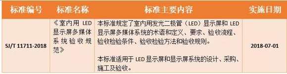 2018年7月1日起,工業(yè)和信息化部發(fā)布了第23號(hào)公告,批準(zhǔn)594項(xiàng)行業(yè)標(biāo)準(zhǔn),涵蓋電子行業(yè)標(biāo)準(zhǔn)24項(xiàng),涉及《室內(nèi)用LED顯示屏多媒體系統(tǒng)驗(yàn)收規(guī)范》等顯示領(lǐng)域多項(xiàng)行業(yè)標(biāo)準(zhǔn)。