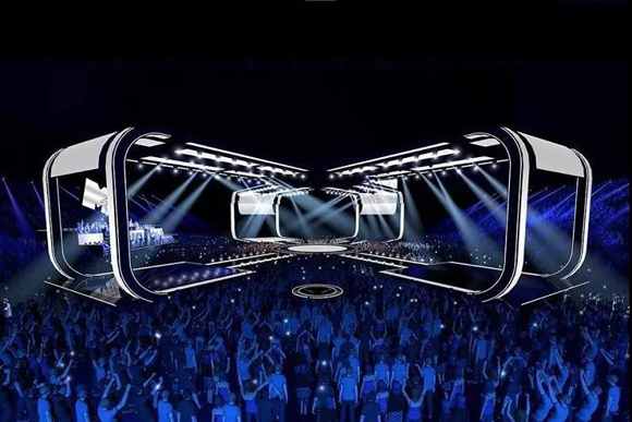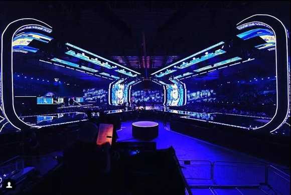 圓形舞臺頂部安裝了led屏幕與燈光裝置,與可升降全息幕布,以此來增強(qiáng)舞臺的空間感與科技感。