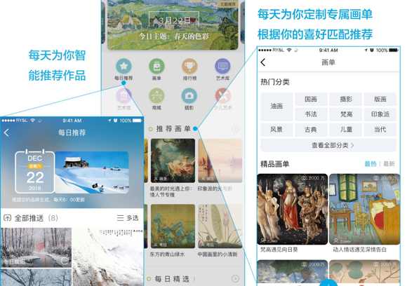 推薦畫單:想知道畫屏每天推送到你家中的8幅作品是什么?快快打開第一個畫單一探究竟吧,每天為你專屬定制五個畫單,每打開一次畫單都是一次驚喜地發(fā)現(xiàn)之旅,都是一次與自己內(nèi)心的對話。