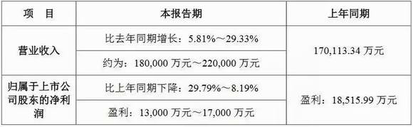 兆馳股份預(yù)計2018年1月1日-2018年6月30日實現(xiàn)歸屬于上市公司股東的凈利潤22,945.79萬元-32,779.70萬元,較上年同期32,779.70萬元下降0%-30%。