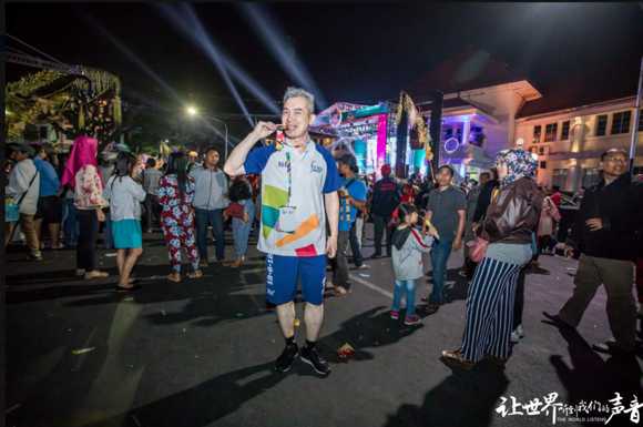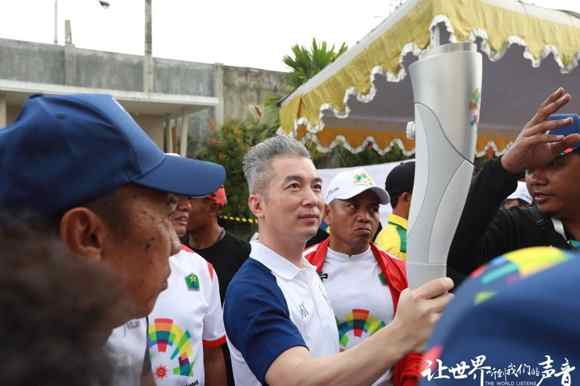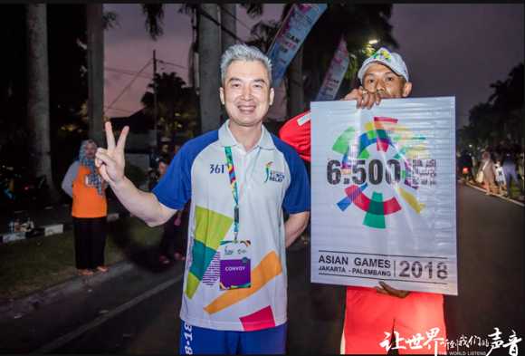 當(dāng)日銳豐科技總經(jīng)理凌子斌在瑪瑯城內(nèi) IDJEN BOULEVARD大街上進(jìn)行火炬的傳遞。印尼當(dāng)?shù)貢r(shí)間7點(diǎn)左右,在喧鬧的呼聲中亞運(yùn)會(huì)火炬終于來(lái)到了凌子斌總經(jīng)理的手中。