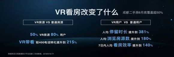 貝殼在成都的數(shù)據(jù)也證明了VR看房備受用戶的認(rèn)可。自今年3月開(kāi)始落地至今,VR房源的人均停留時(shí)間較普通房源提升381%,VR房源較非VR房源相比,人均瀏覽房源數(shù)量也提升了180%,用戶有效交互量提升到原先的2.1倍,VR講房人均服務(wù)時(shí)長(zhǎng)增長(zhǎng)約180秒。此外,使用過(guò)VR看房功能的用戶7日內(nèi)人均看房效率提升到140%,相較電話熱線,使用VR帶看功能轉(zhuǎn)化為經(jīng)紀(jì)人商機(jī)的提升到了215%。
