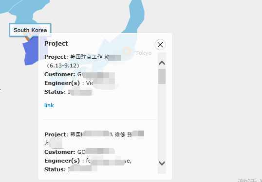 你以為我的工作就此結(jié)束了嗎?當(dāng)然不會(huì)!我不僅僅有信息查詢的作用,還能進(jìn)行服務(wù)監(jiān)控哦!小方到了目標(biāo)地點(diǎn)為客戶服務(wù),會(huì)將自己的信息上傳給我,他的所在國(guó)家、地址、服務(wù)的客戶等。我會(huì)在“人員地圖”上為他點(diǎn)亮代表他的小標(biāo)簽。這樣的話如果在同一地點(diǎn)還有其他需要服務(wù)的訂單,我們就可以聯(lián)系小方了。