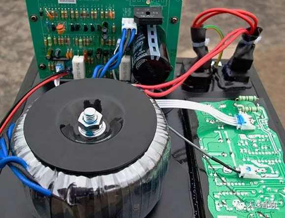 電路方面,以國(guó)產(chǎn)天逸的SUB-12TD低音炮為例:該低音炮輸入部分設(shè)計(jì)了一系列高通通和低截濾波器,其中分為:一級(jí)性能優(yōu)異的低噪聲恒流源和電子穩(wěn)壓的差分電壓放大電路、一級(jí)電流放大電路、末級(jí)高效率的大電流甲乙類推挽功放電路等。功放最末級(jí)增加了一級(jí)由Q12/Q15擔(dān)綱的電流放大擴(kuò)充電路去推動(dòng)達(dá)林頓功率放大,推挽電路上下臂共4只15A/150W的2SC5200/2SA1943東芝大功率管,配合超大的鋁合金外露式梳狀散熱器,以確保該電路在4歐時(shí)有350W的充足功率輸出。相信這樣大的功率儲(chǔ)備,足以滿足一只優(yōu)秀低音炮的嚴(yán)格功率要求!在充分保證主體功放電路優(yōu)秀的同時(shí),該電路還設(shè)計(jì)了一系列過流、過壓、過熱等保護(hù)電路,以保證該低音炮正常工作時(shí)的可靠性。開箱可見:在選擇電阻電容時(shí),所有的電阻均選用優(yōu)質(zhì)五色環(huán)金屬膜電阻。在可能影響音質(zhì)的主要通道和電源濾波部份,分別選用了音質(zhì)好、可靠性高的音頻專用電容和倍受青睞、容量高達(dá)20000微法的日本紅寶石音響專用電解或MARCOM優(yōu)質(zhì)音頻專用電解大水塘;右側(cè)一只400VA的巨型變壓器十分醒目,為整機(jī)提供了充沛的動(dòng)力保障!