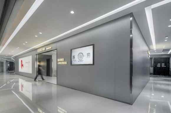 灰色拉絲鋁板外立面,加強了品牌的識別度,也將周邊熱鬧繁復的商鋪做出了對比,形成清晰而強烈的店面?zhèn)性。