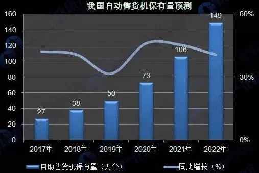 據(jù)前瞻網(wǎng)預(yù)計年投放量將達到10萬到20萬臺,年產(chǎn)值增長20-40億元人民幣,到2022年,我國自助售貨機保有量達到149萬臺。