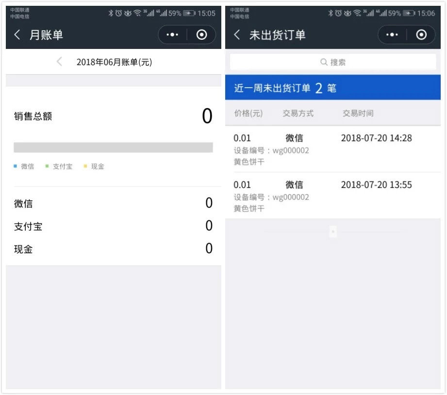 【月賬單】板塊不僅可以看到月度銷售總額,還可以查看各類支付方式的具體收入。【未出貨訂單】板塊支持查看有哪些付了錢但是沒有出貨的異常訂單,包括故障設(shè)備編號,涉及的商品以及金額,便于商家與消費者核對信息并及時解決問題。