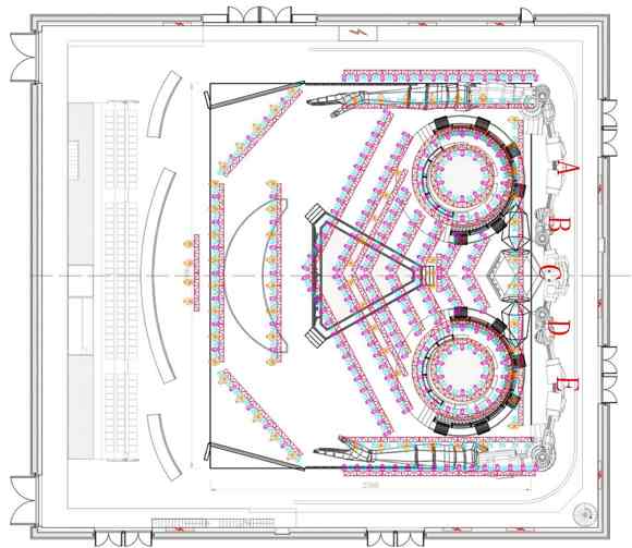 整個(gè)舞臺(tái)融合搖滾樂(lè)的特色和潮流趨勢(shì),運(yùn)用金屬材質(zhì)和LED勾線,在視覺(jué)上增強(qiáng)了整個(gè)空間的層次感和立體感,無(wú)處不展現(xiàn)出搖滾的硬核魅力。