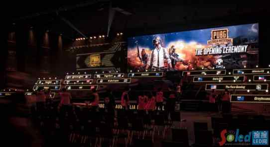 此外,7月份,風(fēng)靡全球的戰(zhàn)術(shù)競技類游戲“絕度求生(PUBG)”總決賽在柏林舉行。主辦方在舞臺中心安裝了一個360°巨大圓柱屏和四個大LED屏圍城一個四面體,總共580㎡,都是由雷迪奧的CB5組成。此外,對戰(zhàn)臺的顯示屏幕也是雷迪奧的BO2,共100㎡。今年4月,PUBG在澳洲的公開賽也用CB3在主舞臺上搭建了一塊18×4.8 m的大屏幕。