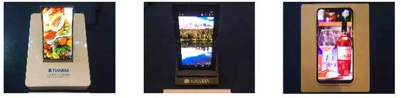 柔性產(chǎn)品一直是近年顯示領(lǐng)域的熱門(mén)話(huà)題,此次天馬展出多款柔性產(chǎn)品,其中這款5.99英寸18:9外彎折疊的全面屏,屏幕的上、左、右均為0.85mm的窄邊框,搭配雙排COF設(shè)計(jì),具有超高屏占比,分辨率為2880×1440,解析度達(dá)到真正的FHD 538 PPI。該屏可以大幅度減少智能終端設(shè)備的體積和重量,在屏幕顯示尺寸不變的情況下,彎折的形式更便于攜帶,擁有更多的使用場(chǎng)景,為智能手機(jī)等終端應(yīng)用提供了更多選擇。