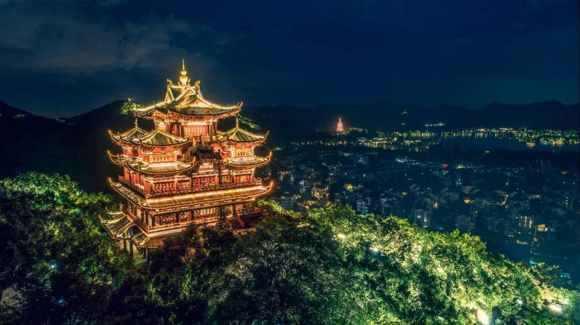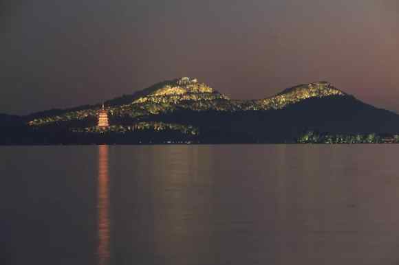 入夜后的西湖是很動(dòng)人的,一盞盞相繼亮起的景觀(guān)燈,把寶石山,城隍閣,湖中三島裝點(diǎn)成黑夜中最閃耀的星星。