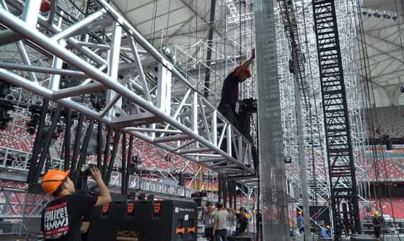 鳥巢體育場比其他體育場多出一層看臺,為了保證高品質(zhì)的現(xiàn)場音質(zhì),掛了8串延時補聲系統(tǒng),在調(diào)試上會有一定難度。演唱會使用的L-ACOUSTICS音響也是張杰個人認為最棒的,包括調(diào)音、舞臺燈光都很棒,他非常享受舞臺。
