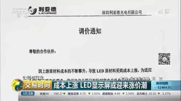 由于成本上漲,下游的LED顯示屏企業(yè)也紛紛發(fā)出漲價(jià)通知。