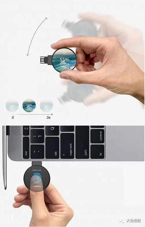 這款名為One-Step的智能U盤是針對人們拷貝資料時內存不足,無意丟失U盤導致信息泄露等問題,通過將現(xiàn)有的重力傳感器,屏下指紋識別,OLED等技術與Shake、Hold、Touch手勢相結合,做到內存顯示只需隨時一搖,指紋解鎖只需隨手一按,文件快速打印與轉移只需隨心一觸。One-step智能U盤提供的整合性解決方案,為用戶帶來全新有趣,前瞻性的交互體驗。 設計:Xingxu Chen,Prof.Shaoping Guan&Jing Yang