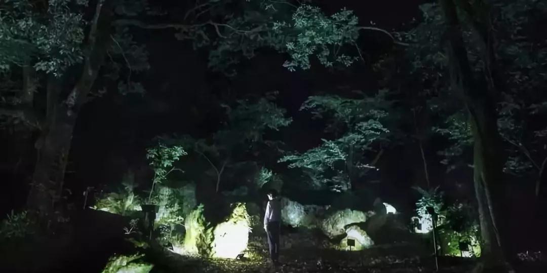 比如其作品“忘卻巖群”,在森林中放置由20個巖石所組成的巖石群,它們會發(fā)出光芒,每個巖石的光芒都以自律的方式變化,宛如在呼吸似的不斷明滅閃爍。