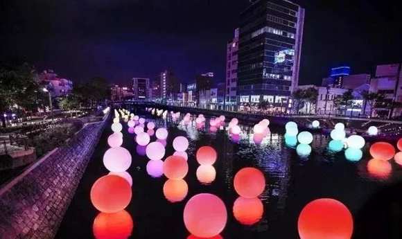 這些發(fā)光的大球為夜幕籠罩下的海面添上了許多亮色,夜晚的海,突然就不那么寂寞了呢。