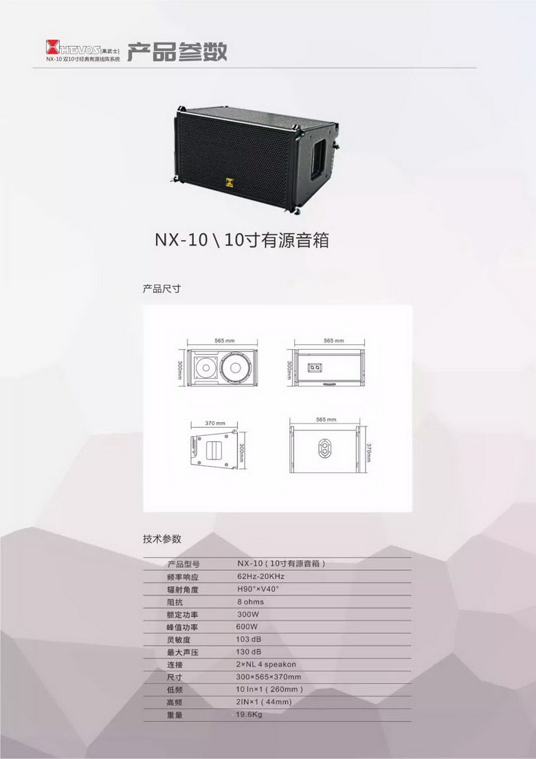 NX系列有源音箱是一款多用途小型線陣音箱系統(tǒng)。采用10寸低音單元和2寸高音單元,輸出功率強(qiáng);系統(tǒng)音色出眾,表現(xiàn)力出色,效率高且工作穩(wěn)定,還有極高的性?xún)r(jià)。