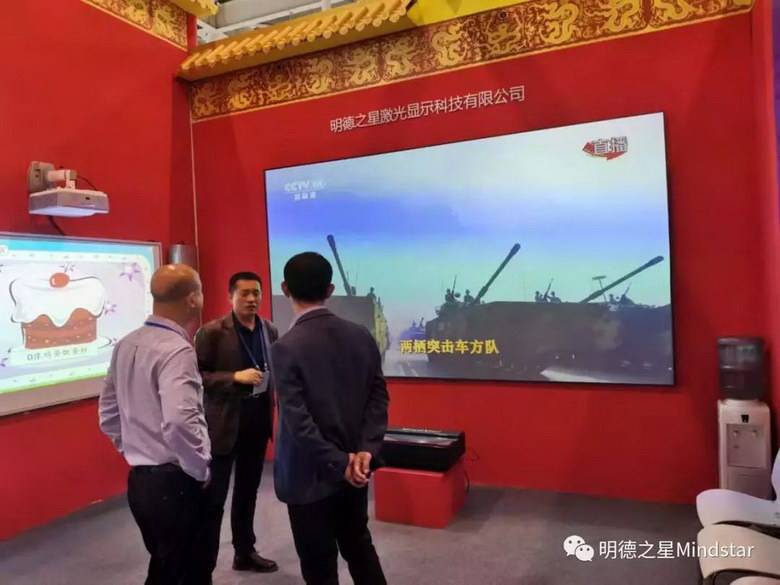 此次明德之星主要展示產(chǎn)品為:150寸4K激光影院、智能教育多媒體投影及裝備一體化、多功能沉浸式體驗(yàn)室、大屏?xí)h系統(tǒng)。