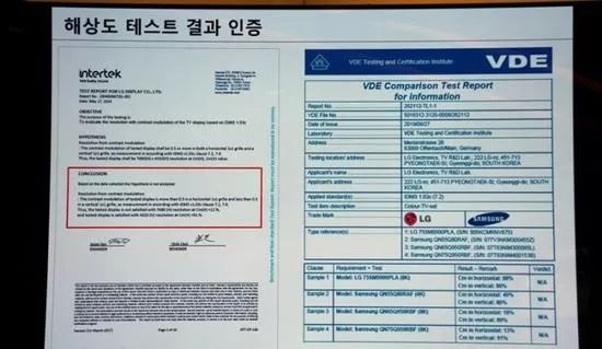 數(shù)位LG高管在上周六舉行的一場(chǎng)IFA 2019新聞發(fā)布會(huì)上做出了一番評(píng)論,LG代表指出,產(chǎn)品測(cè)試和認(rèn)證機(jī)構(gòu)Intertek和VDE通過(guò)對(duì)三星、LG和索尼商用8K電視進(jìn)行測(cè)試,其結(jié)果顯示,三星的QLED 8K電視的明暗對(duì)比度調(diào)制(CM,Contrast Modulation)僅為12%,遠(yuǎn)低于8K標(biāo)準(zhǔn)50%的閾值,而索尼8K電視的CM為70%,LG自己的產(chǎn)品為90%。