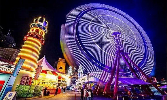 摩天輪點(diǎn)亮了3000多個(gè)LED燈,讓游客們?cè)诠庥敖诲e(cuò)間體驗(yàn)精彩刺激的游樂設(shè)施。從燈光步道到月神公園,大規(guī)模的投影裝置和街頭表演,讓游客沉浸在一片歡笑的海洋里。