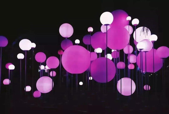這是來(lái)自我國(guó)設(shè)計(jì)師團(tuán)隊(duì)的《與光共舞》的作品,輕輕地吹動(dòng)裝置,無(wú)數(shù)粉紅色的泡泡將隨著氣息劃過,由近及遠(yuǎn)逐漸被逐一點(diǎn)亮。