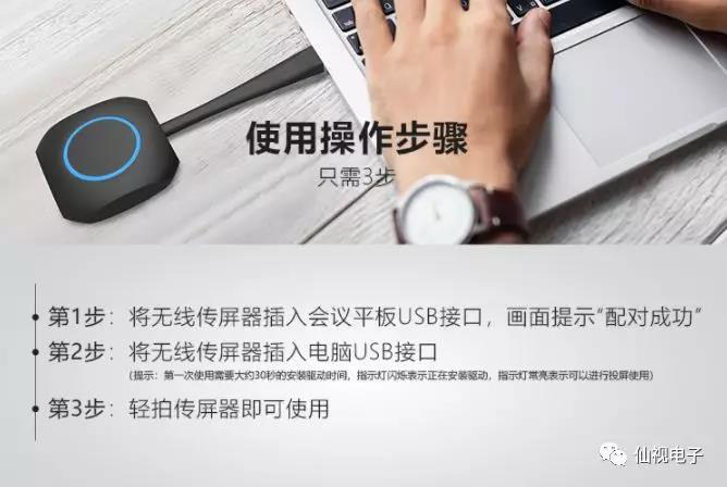 簡(jiǎn)單來(lái)說(shuō):先在把投屏器插到會(huì)議平板上,按一下中間的小圈圈。然后把它插到電腦上,再按一下小圈圈,完成配對(duì),然后就可以愉快地同屏了~